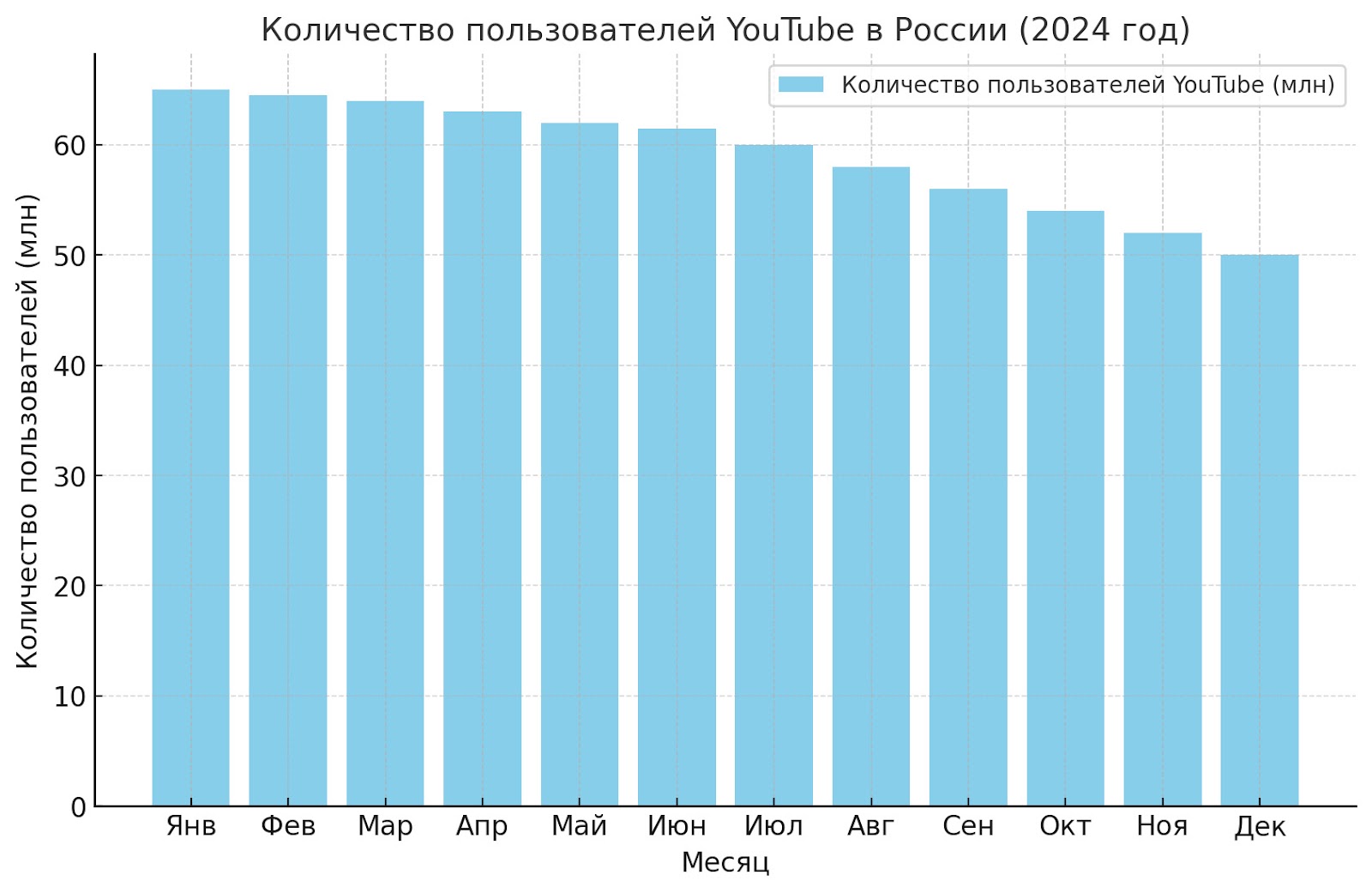 В начале 2024 года YouTube в России насчитывал порядка 65 миллионов активных пользователей в месяц. Однако к декабрю эта цифра сократилась до 50 миллионов, что указывает на снижение на 15 миллионов пользователей за год. Причины очевидны:
