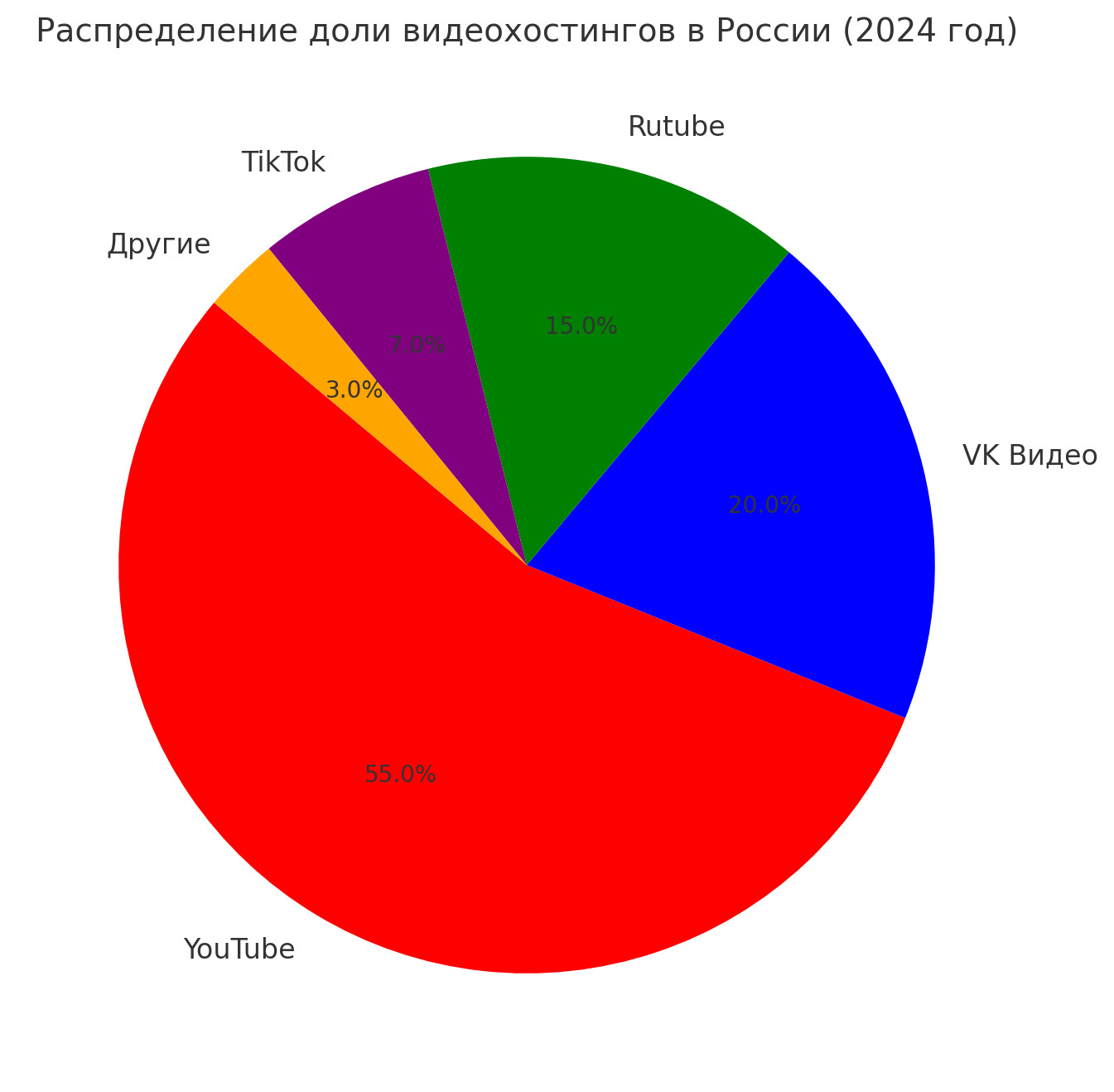 На фоне перемен распределение долей видеохостингов в 2024 году приобрело следующие очертания: